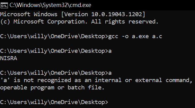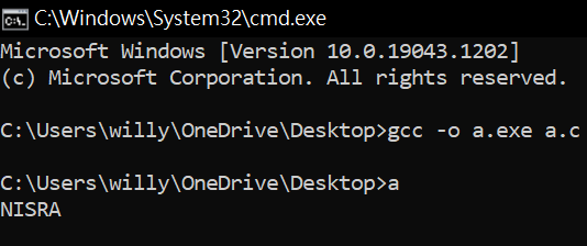 gcc -o a.exe a.c
