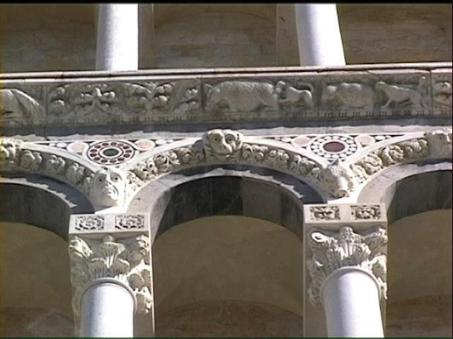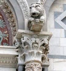 I capitelli sono decorati da bassorilievi che spesso sono costituiti da animali; su di essi poggiano gli archi.