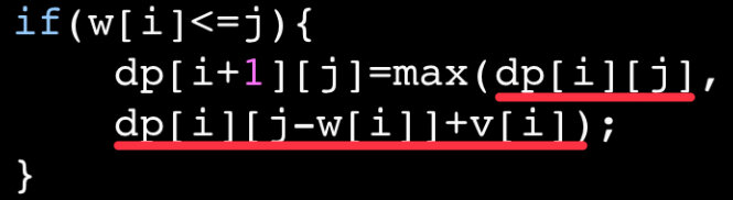 dp[j]=max(dp[j],dp[j-w[i]]+v[i]);
