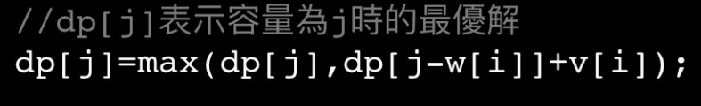 //dp[j]表示容量為j時的最優解