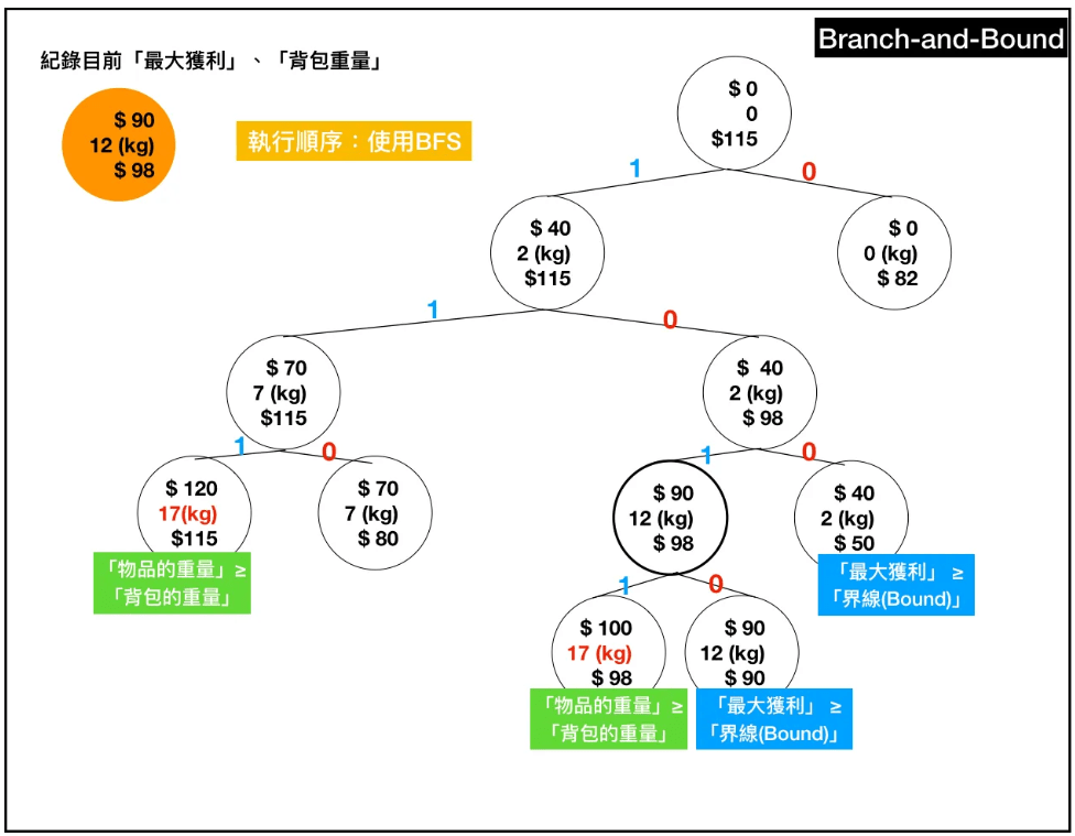 分支界限法:窮舉+剪枝,用界限函數排除無效解。