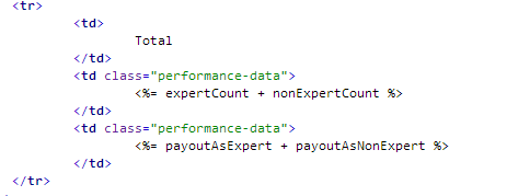 this.$el.html(this.template(this.model.toJSON()));- Do NOT use any logical / arithmetical or any type of calculation or modification inside the template.