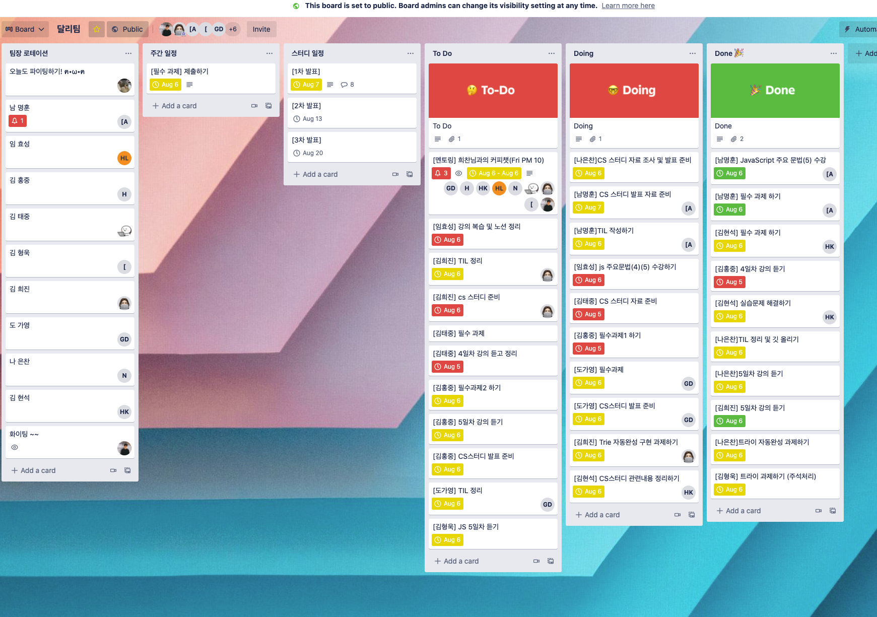- 일일 태스크 진행 및 회고 보드를 같이 진행해보면 어떨까 싶습니다