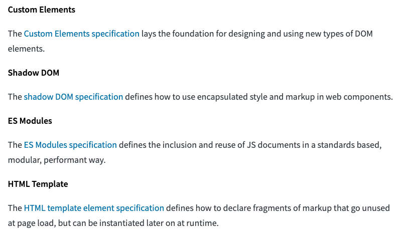 The Custom Elements specification lays the foundation for designing and using new types of DOM elements.