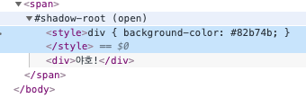 .innerHTML = '<style>div { background-color: #82b74b; }</style><div>야호!</div>';