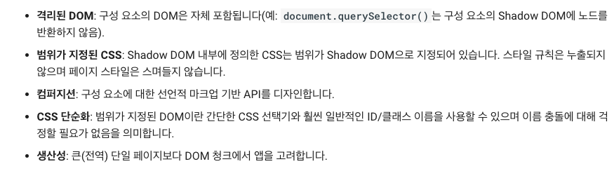 혹은 프레임워크들이 또 웹 컴포넌트의 좋은점들을 차용 (shadow-dom같은)