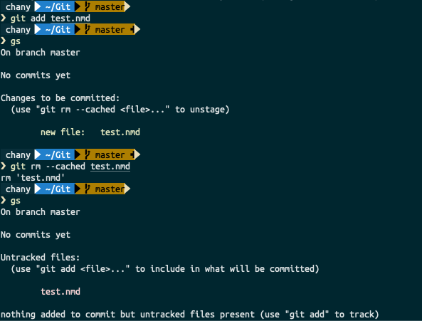 git rm --cached <파일> staged에 올라간 파일 다시 내리기