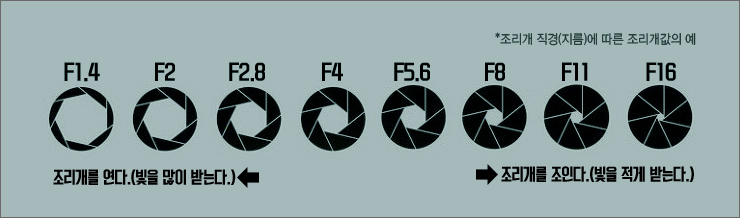 조리개란 F스톱 = 초점거리/개방된 렌즈 직경