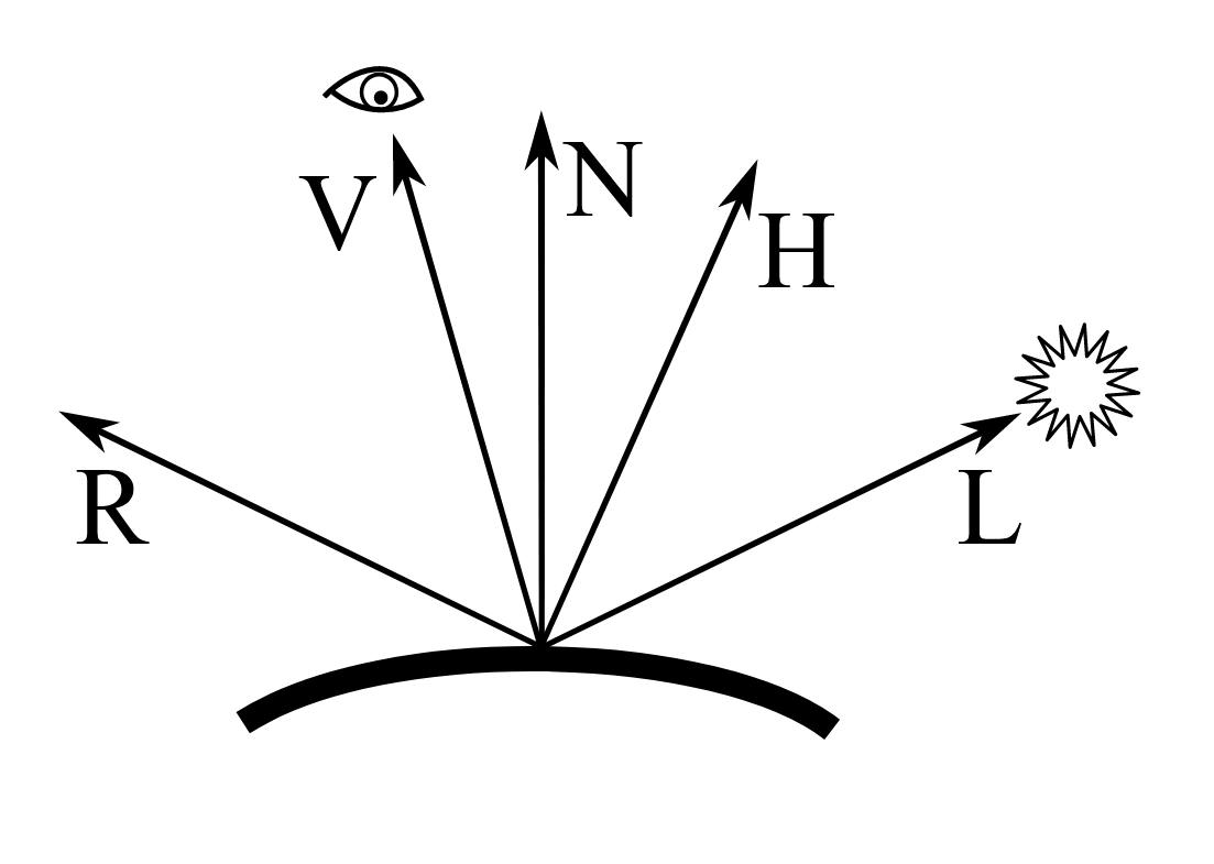Compute the cosine between r (reflected light) and v (view), then raise that value by however 'specular' the surface is