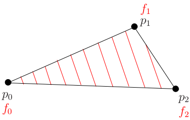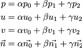 All values of a point are the interpolation between the 3 outer points & their barycentric coordinates