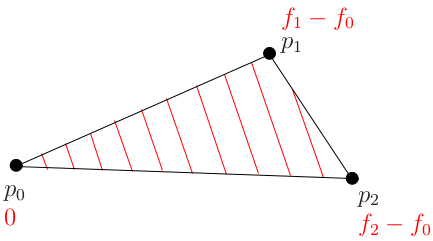 Recall that if we go from point p0 to point p2, then the function g will go from zero to f2-f0.