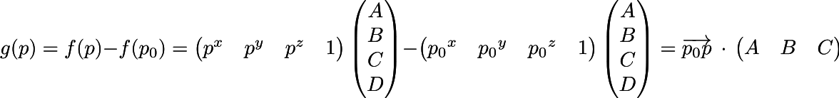function g is a dot product between vector (p-p0) and (ABC)