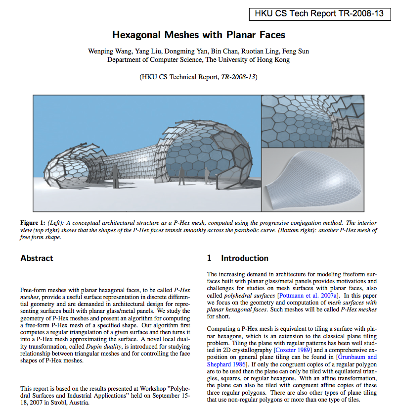 Discretização de superfícies curvas através de painéis hexagonais planos