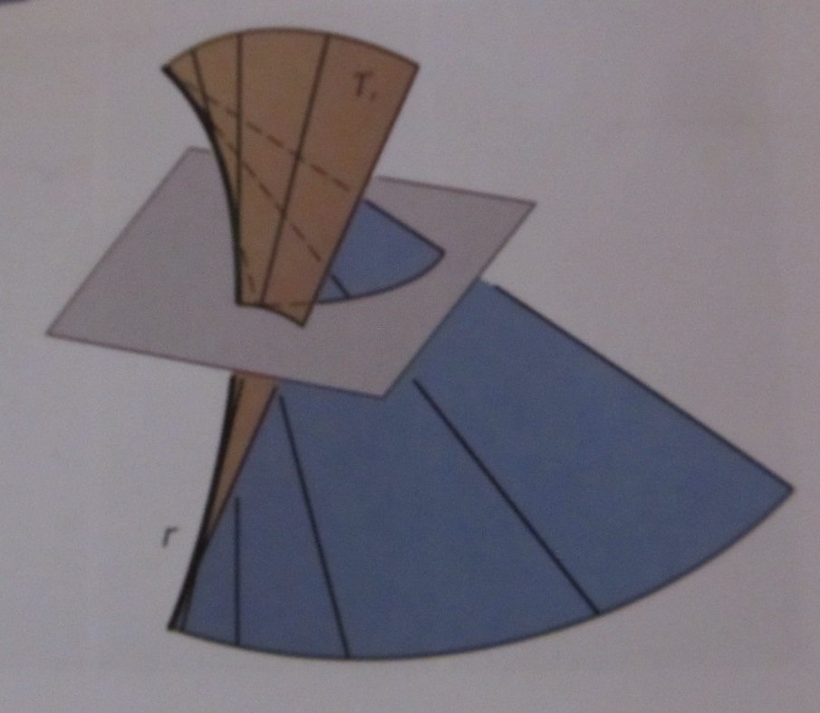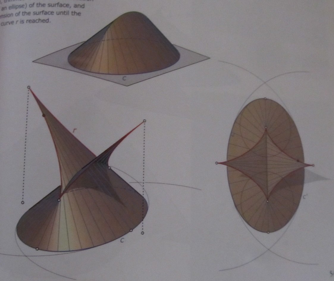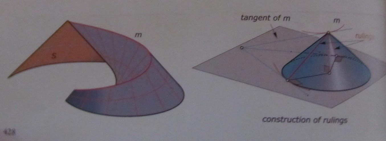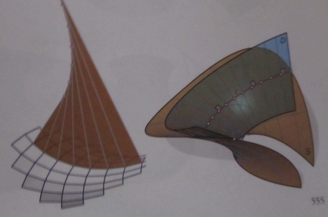 A superfícies é determinada pela translação do vértice de um cone ao longo da curva da cumeeira.