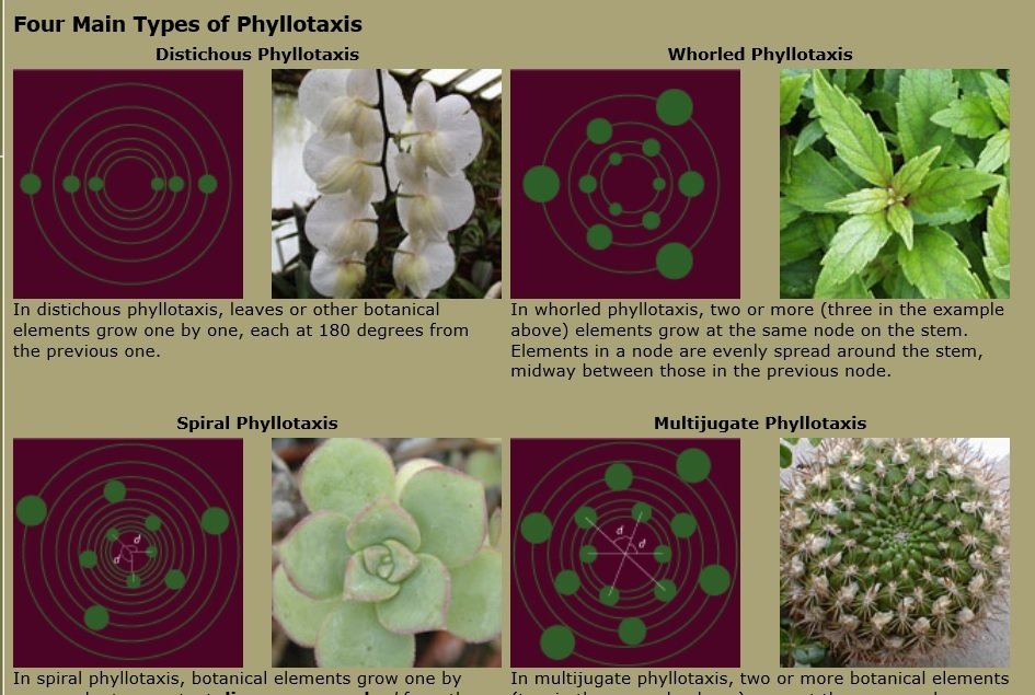 56% das plantas apresentam filotaxia espiral e destas, 92% são filotaxias de Fibonacci