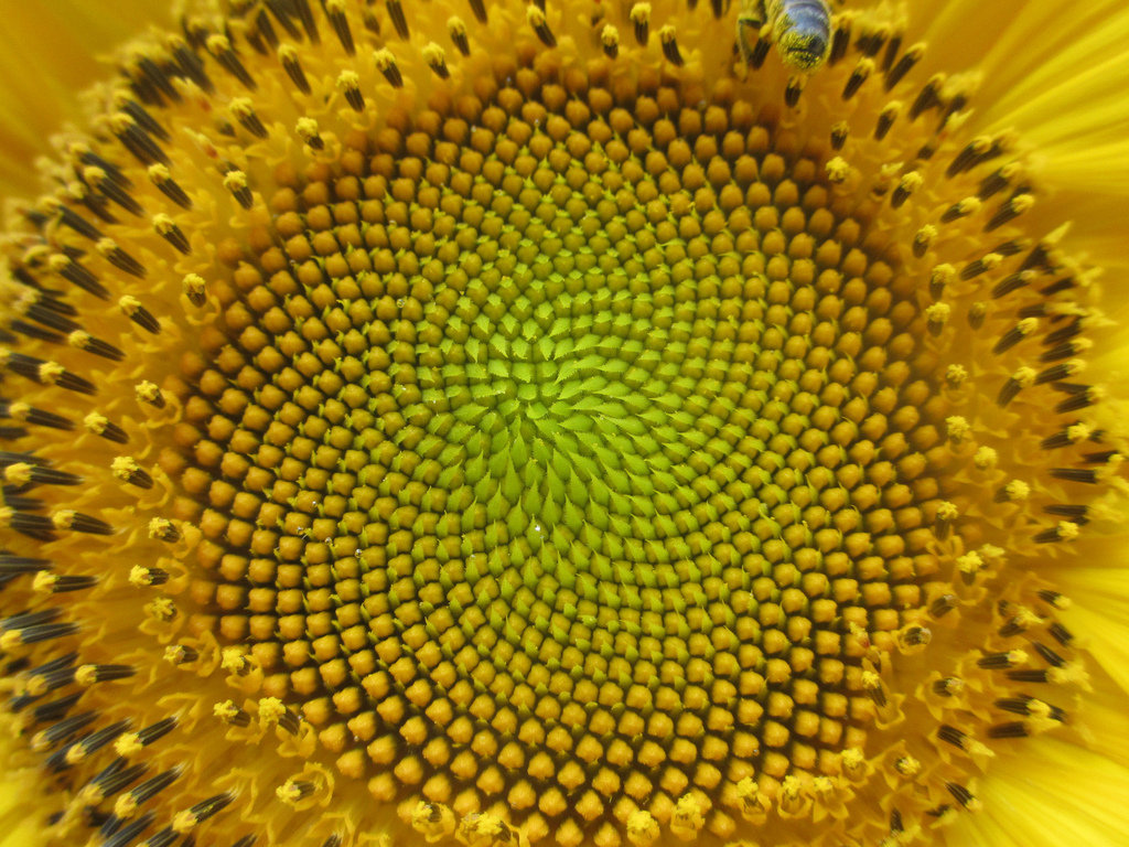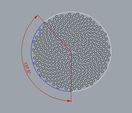 O girassol tem ângulo de divergência áureo, mas as sementes são distribuidas sobre uma espiral de Fermat