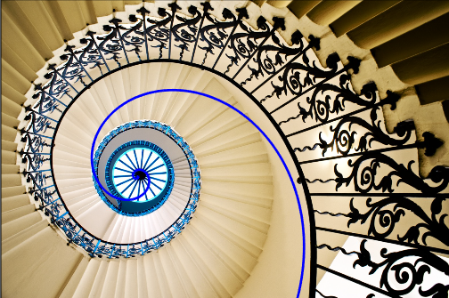 Escadas caracol vistas em perspectiva não são espirais logarítmicas (muito menos áureas)...
