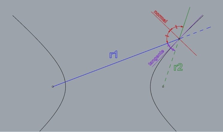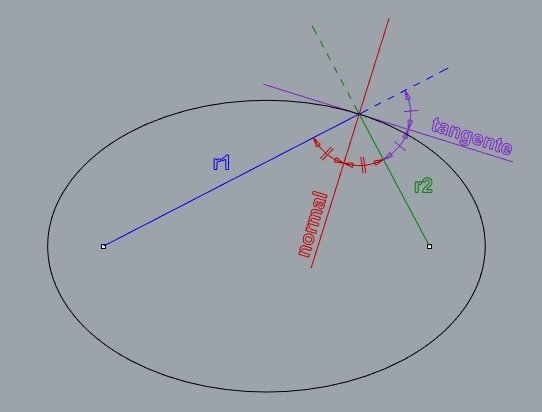 a normal e a tangente são as bissetrizes de r1 e r2