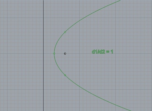 d2 = distância a uma reta (diretriz)