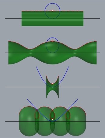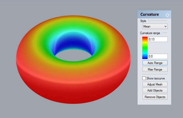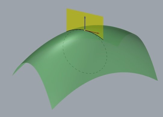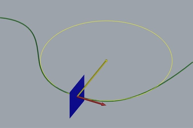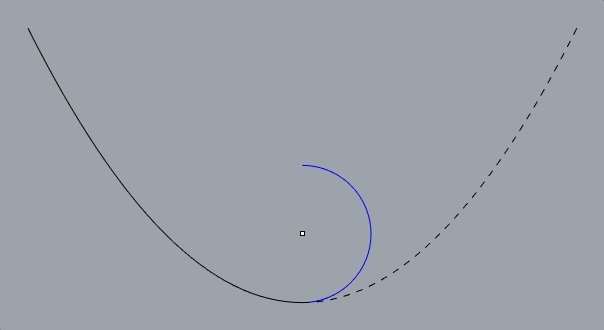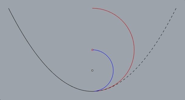 (o Rhino tem um comando para desenhar círculos osculadores e outro para mostrar as curvaturas)
