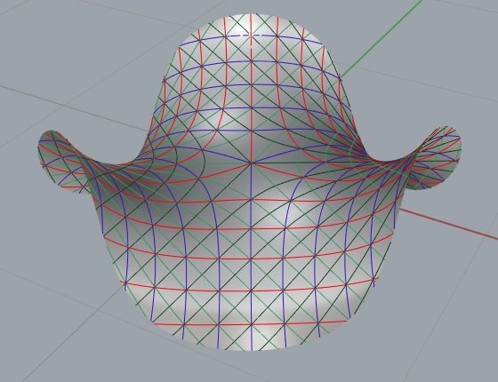 O paraboloide hiperbólico e o hiperboloide de 1 folha são as únicas superfícies com as duas linhas assintóticas retas.
