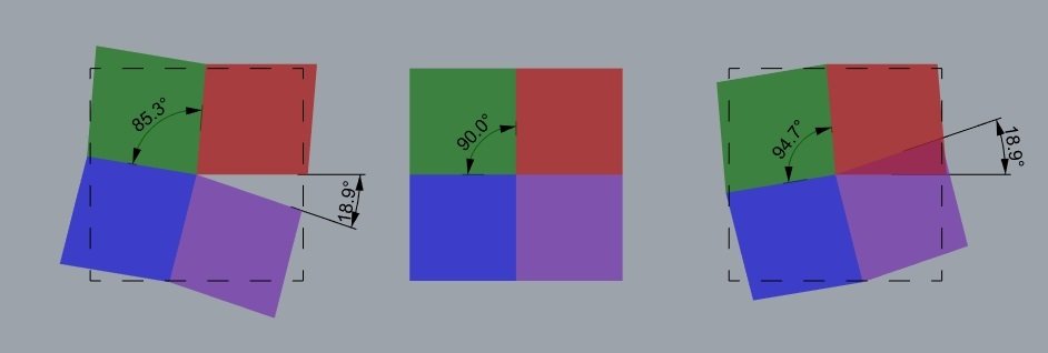 o ângulo de cruzamento das retas variam de um cruzamento para o outro.