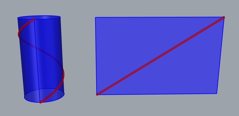 No cilindro, as linhas geodésicas são hélices, circunferências e retas.