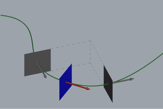 - o segundo é a projeção do arame no plano tangente do chapa. A curvatura dessa projeção chama-se curvatura geodésica (kg). Ele sempre discorda do Sr. Chapa em relação a normal.
