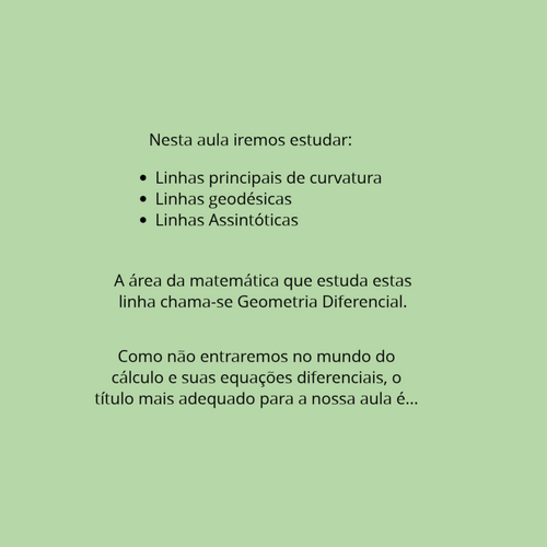 Em breve veremos que as linhas com estes poderes "mágicos" (linhas principais de curvatura) podem ser traçadas sobre qualquer superfície e não apenas em sistemas triortogonais.