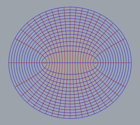 Se cada secção plana é uma elipse diferente, com seus respectivos focos, como desenhar elipsoides e hiperboloides cofocais ?