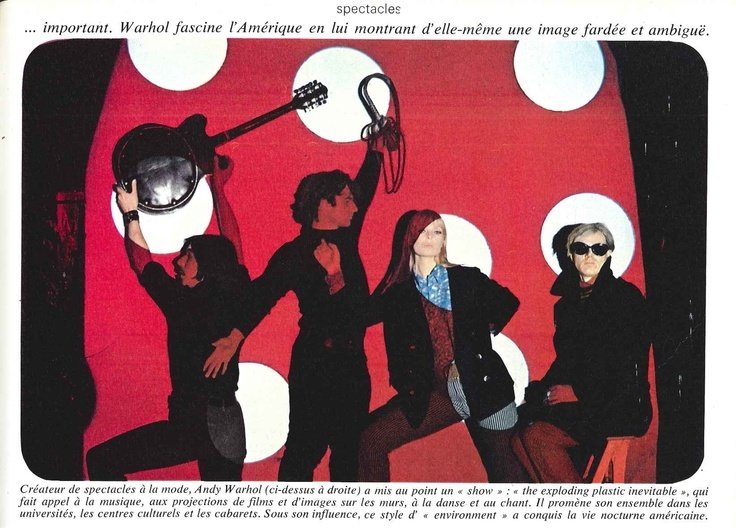 - Join Warhol's multimedia roadshow "Exploding Plastic Inevitable" from 1966-67