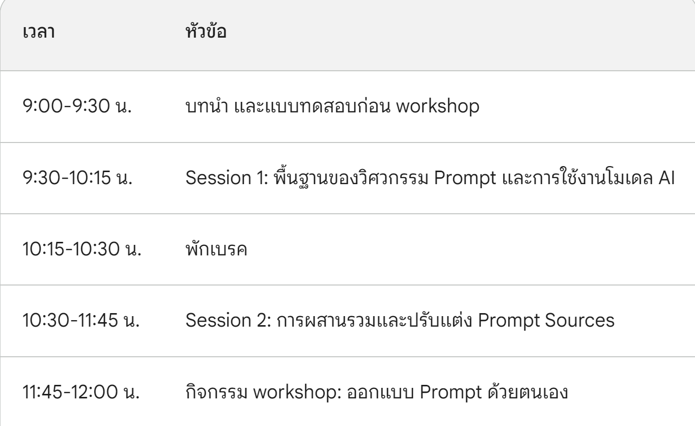 **Session 1: พื้นฐานของวิศวกรรม Prompt และการใช้งานโมเดล AI (45 นาที):**