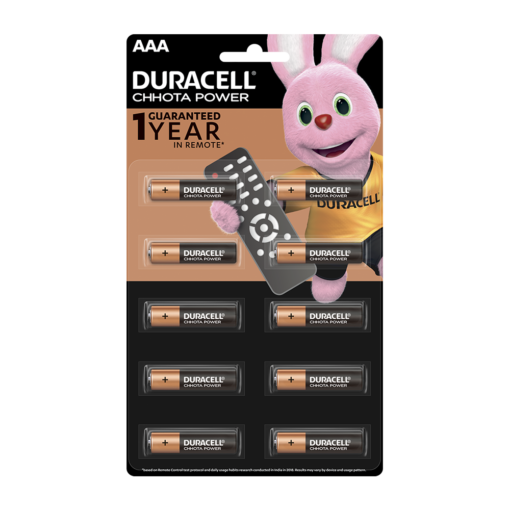 Duracell Chhota Power Alkaline AAA – Guaranteed 1 year in remote*. Simplify your life with guaranteed power from Duracell Chhota Power, best for use in low to moderate-drain devices, like remote controls or clocks. Duracell Chhota Power batteries are available in sizes AA & AAA