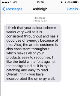 I had successful use of synergy as its clear that my audience can make a connection between the music video and digi pax. This connotes that my digi pax has been successful in conveying effective synergy with my ancillary products