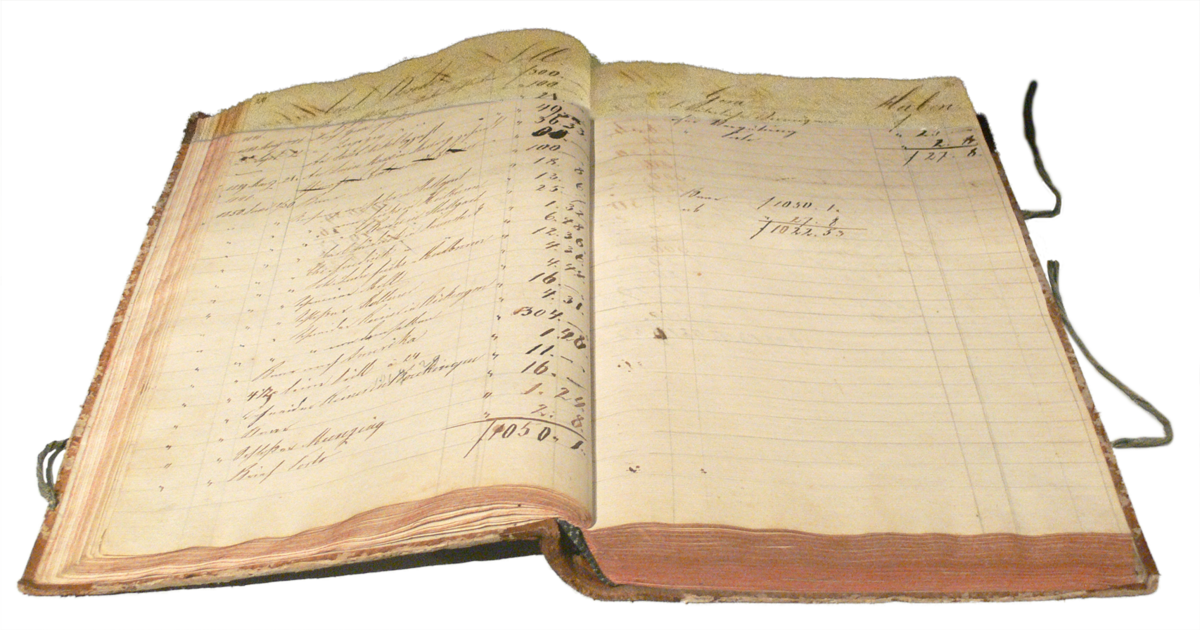 Given the initial amount, one can go through the ledger to find out the current amount at any time