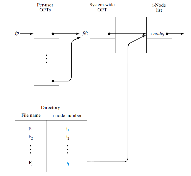 - fopen returns to the caller a pointer fp to the private OFT entry, which is stored in the FILE structure.