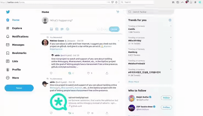 A browser extension that hides misogynistic harassment from your Twitter feed.