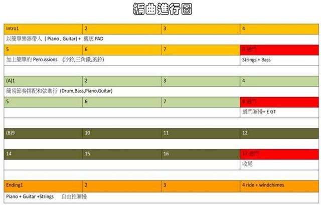 1. 層次:同一個樂器手法不要用超過16小節,樂器出現時機要讓人有耳目一新的感覺!
