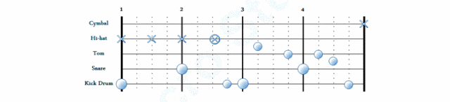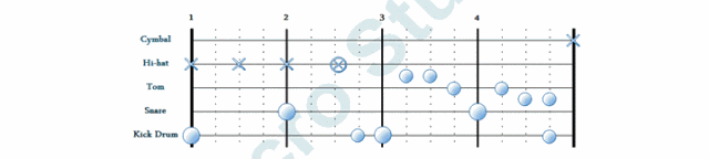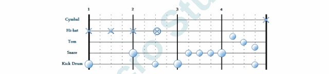 1.再第3,4拍加上Tom Tom排列出豐富的變化.