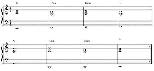 絕對音名: C - G - Am - Em - F - C - F(Dm) - G