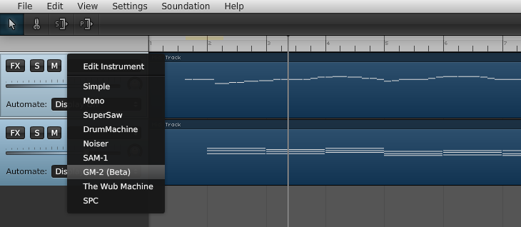 幫兩軌MIDI檔選擇音色,第一軌可選Flute等吹管類