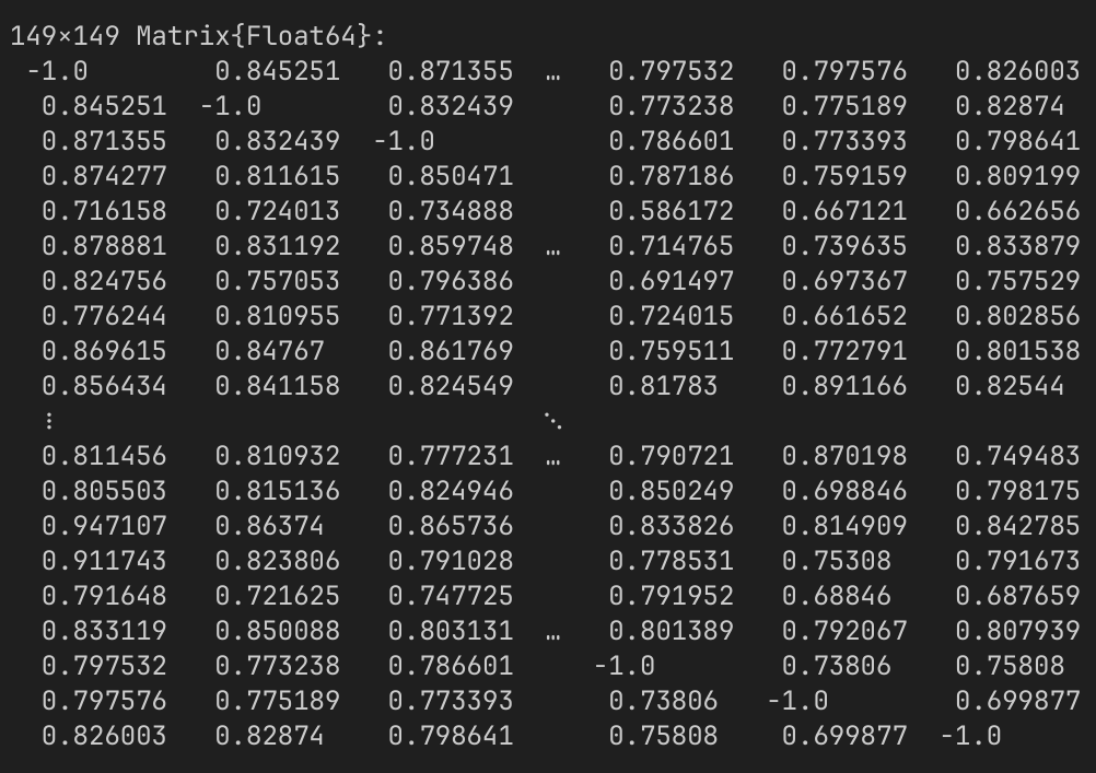 This gives us a square matrix consisting of all the pairwise correlations between different traces.