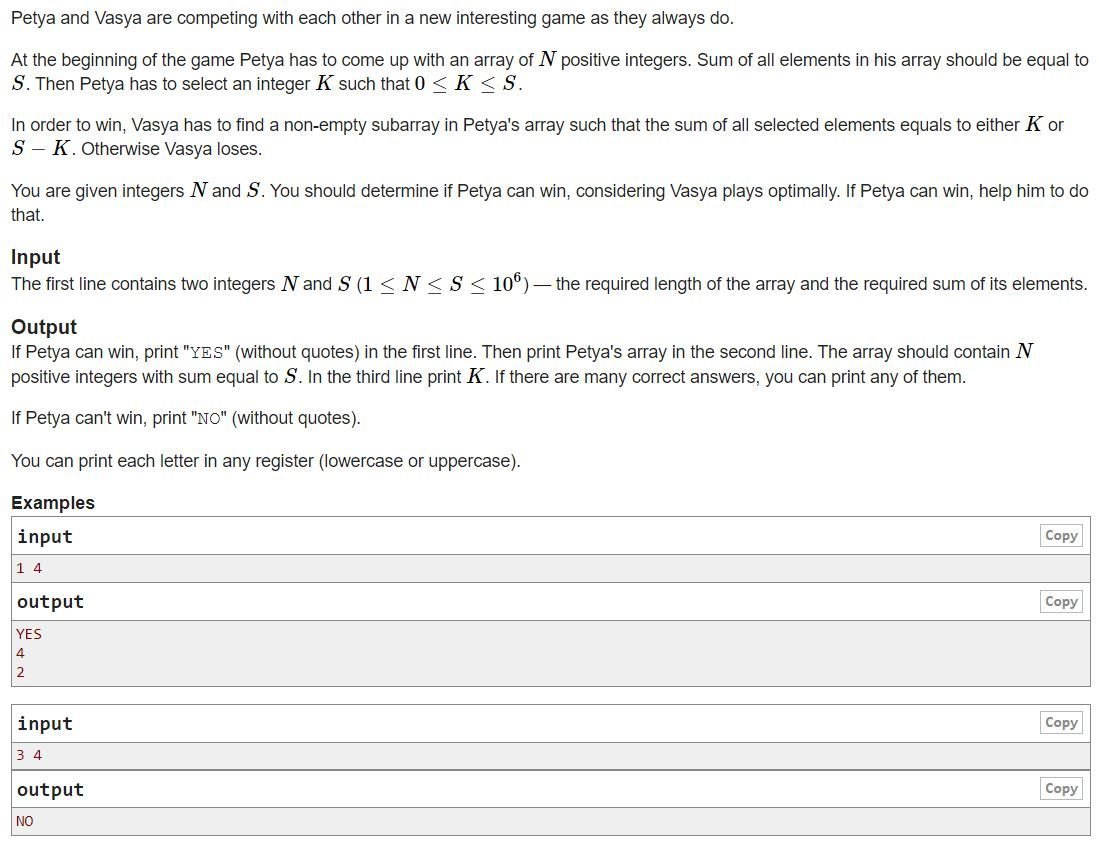 Observe sum >= 2n there is an answer