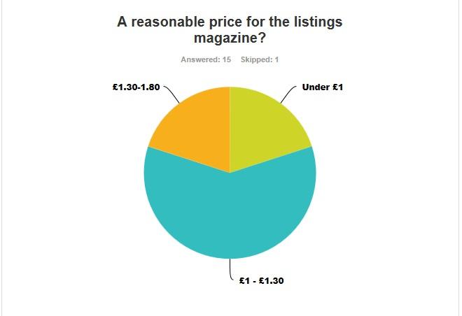 The general price which a reader would pay for a TV listings magazine is “£1-£1.30″ which we believe to be reasonable too, as we do not believe the TV listings magazine should be charged up to £1.80, this will turn away potential readers.