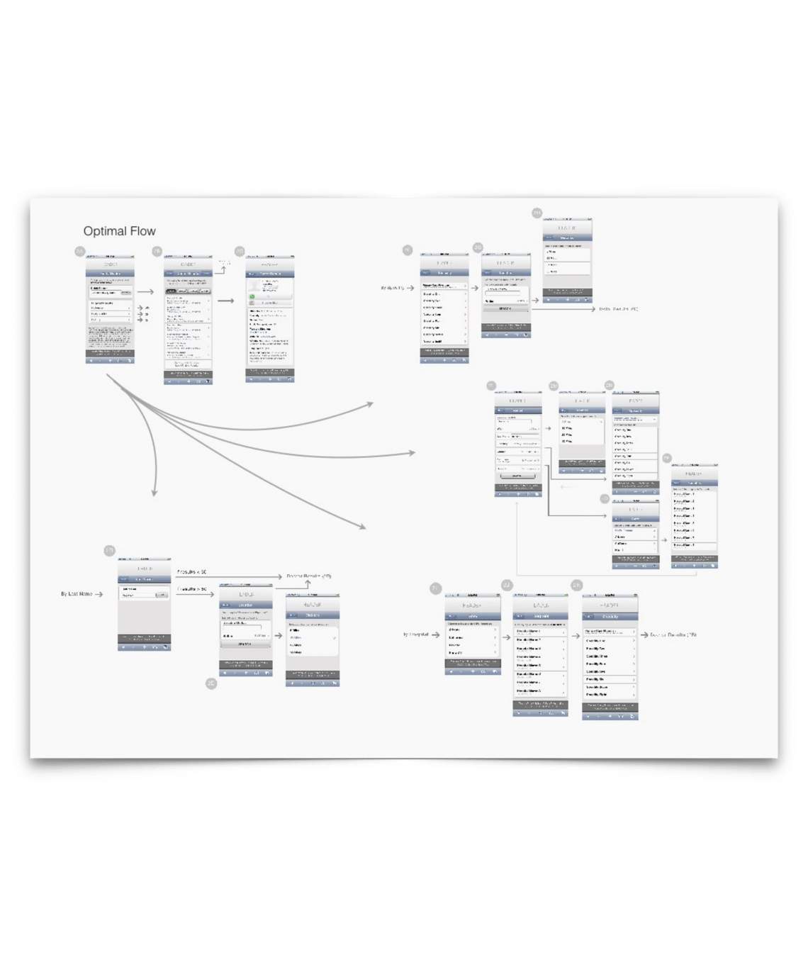 Given touch screen UIs were still fairly new, the patterns on click target sizes and placement had to be tested. The fastest way at this early stage of mobile development was to design in 1:1 so screens could be printed out, cut out, and laid right onto the screen to test thumb reach and click target sizes.