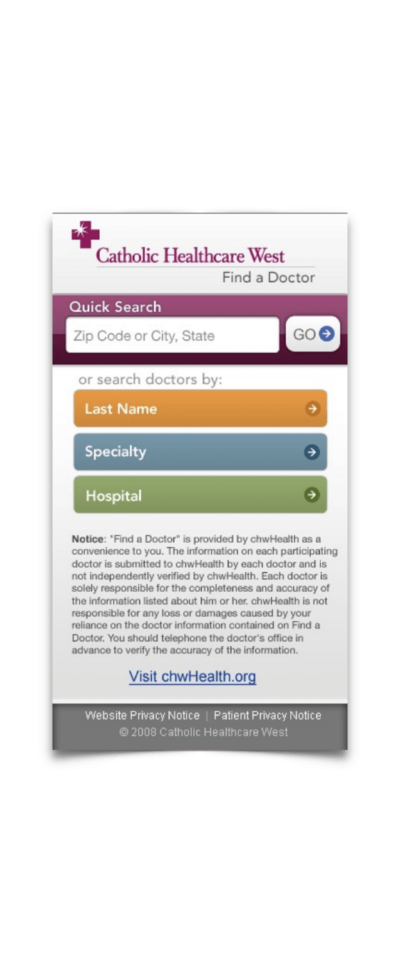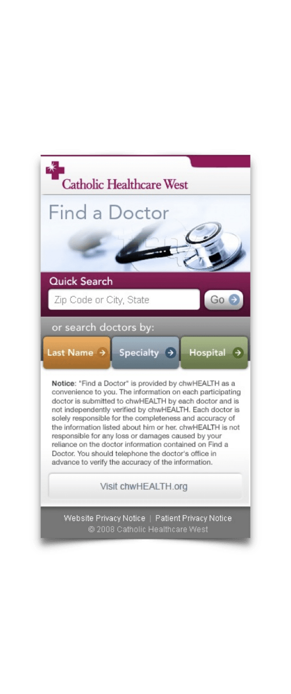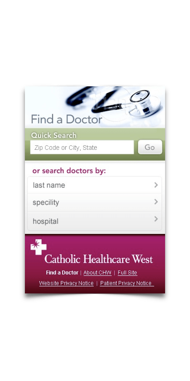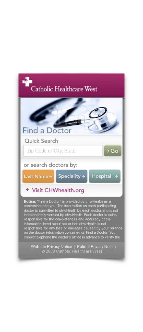 Not long after the iPhone revolutionized the way we browsed the web, Catholic Healthcare West was seeking a mobile web presence as a market differentiator in this new smart phone era.