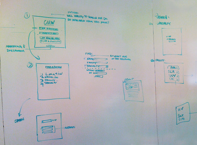 Various visual designs and setups were created, and tested with various users in guerilla-style user testing. One key stakeholder in the project was the brand director of CHW, so end site had to fit within brand standards and direction.