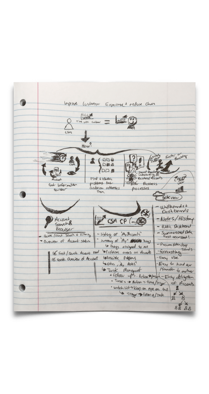 The project began by a deep assessment of the problem. How were CSR's (Customer Service Reps) were currently doing their work? What challenges were they facing that may have contributed or failed to improve the customer churn.