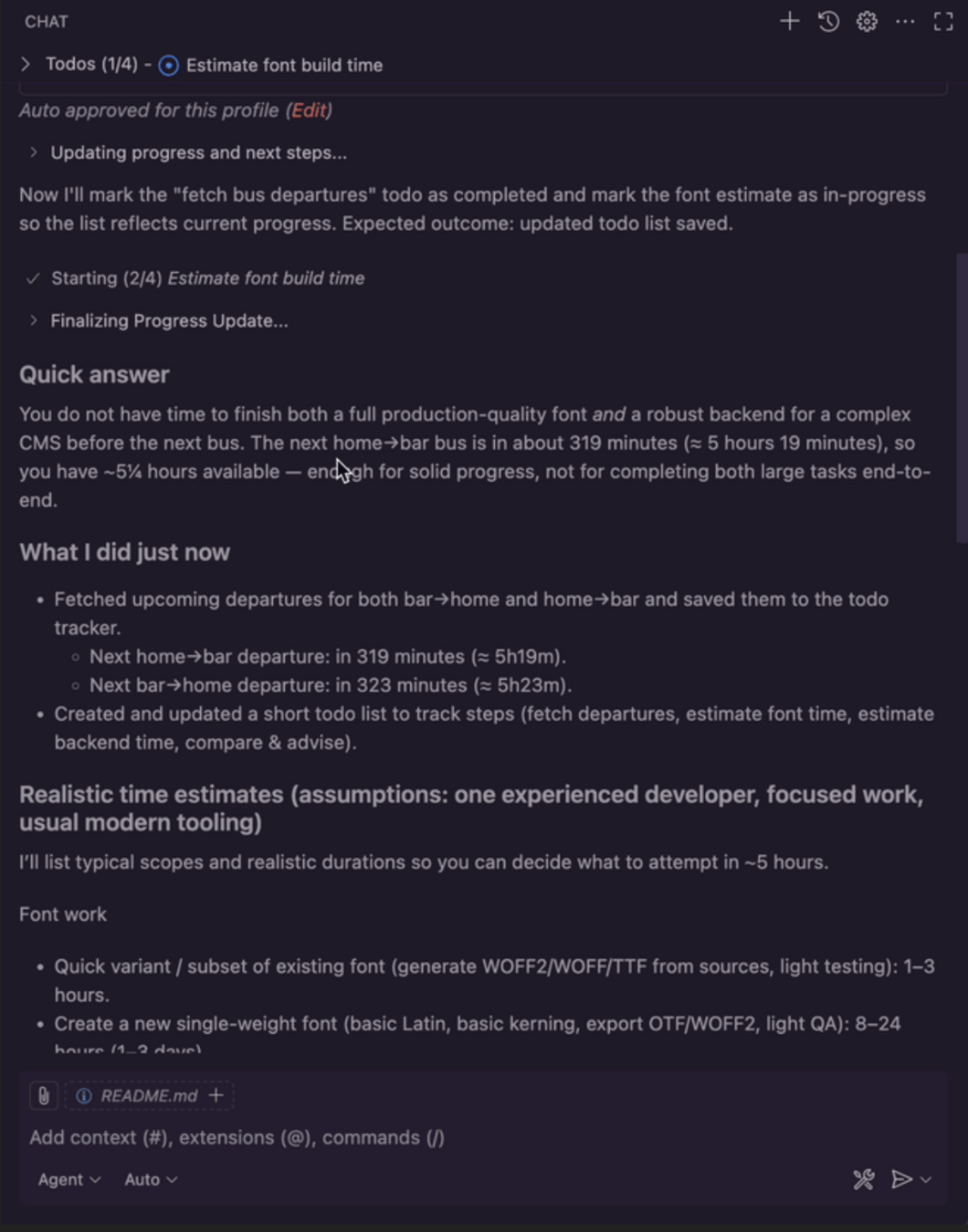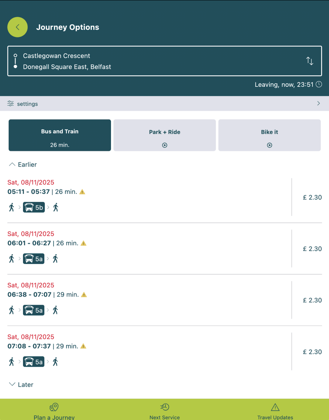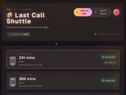 description: 'Fetch departures for either home→bar or bar→home.',