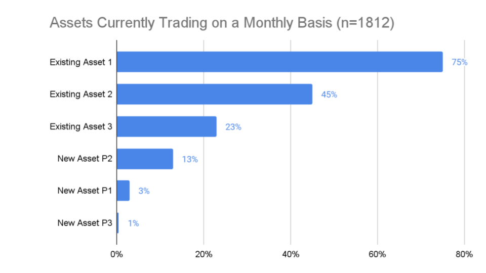 The first component of the survey assessed the amount of active traders who were currently trading a variety of new assets that the company was considering.